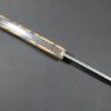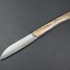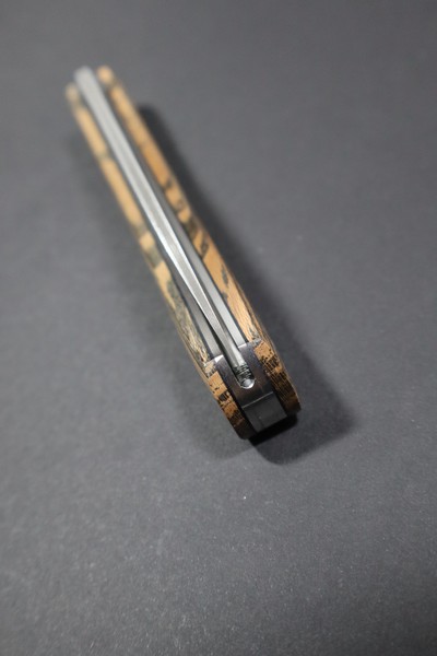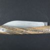 Le Tarn est un couteau artisanal pliant à cran forcé avec butée en acier pour l’arrêt de la lame, évitant ainsi tous risque d’endommager le tranchant en le fermant. Le couteau est le reflet de la vallée du Tarn et de son terroir généreux. L’idée, avec sa lame robuste et coupante, forgée dans les meilleurs aciers, son large manche en bois qui tient bien dans la main, est qu’il devienne un compagnon du quotidien. La lame est en acier inoxidable Suminagashi 67 couches, excellente dureté. Le ressort est en inox Z20c13. La lame et le ressort ont une épaisseur de 3 mm, les platines 1.5 mm