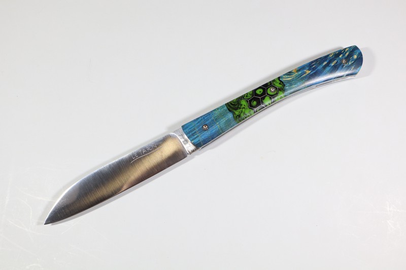 Couteau pliant Le Tarn® manche érable ondé moucheté avec inclusion nid abeilles résine – non disponible – vendu