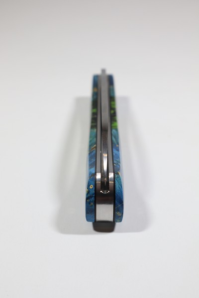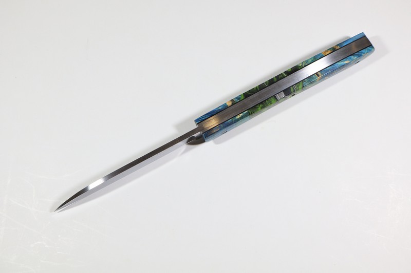 Accueil > Boutique – Couteaux Le Tarn® > Couteau pliant Le Tarn® manche érable ondé moucheté avec inclusion nid abeilles résine – non disponible – vendu